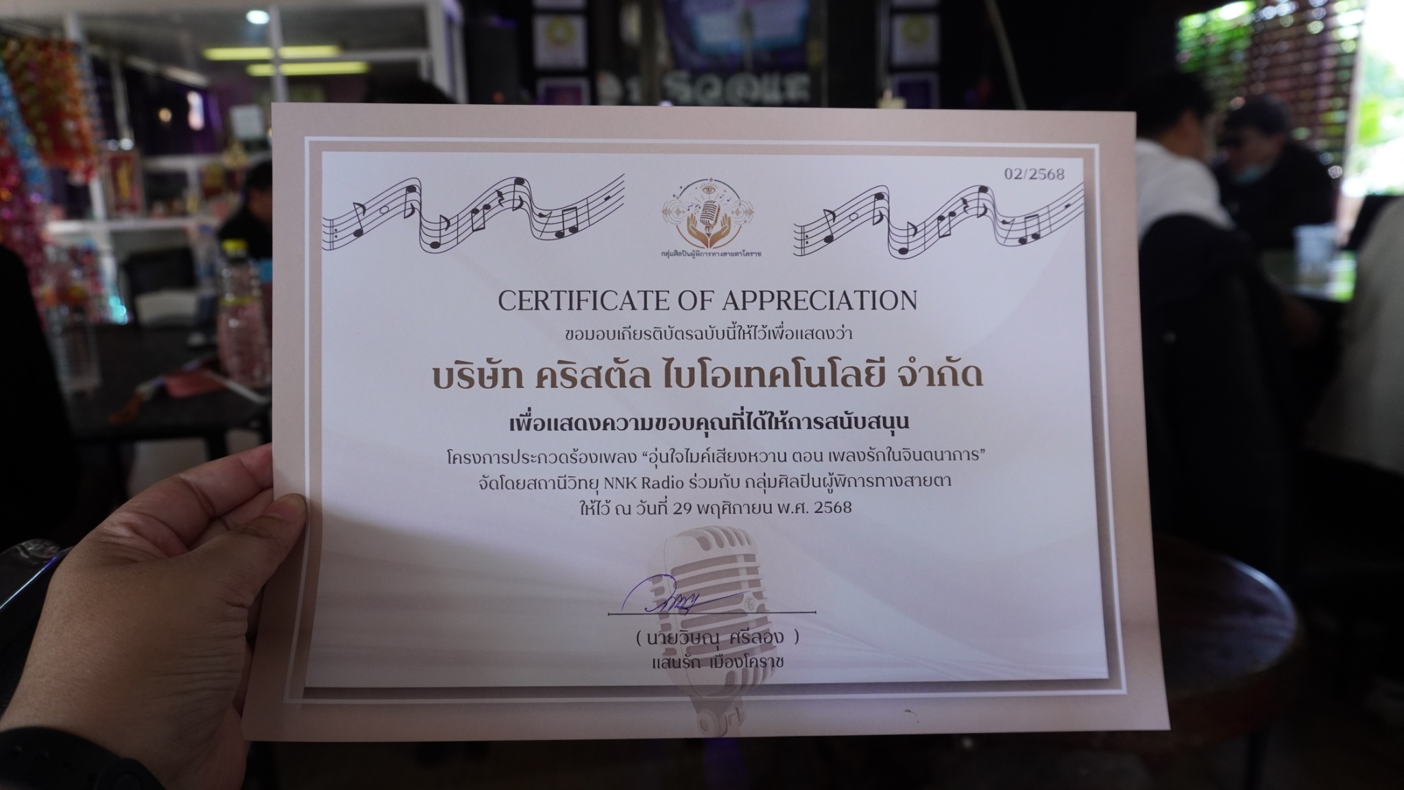 สนับสนุนในการประกวดร้องเพลงผู้พิการ